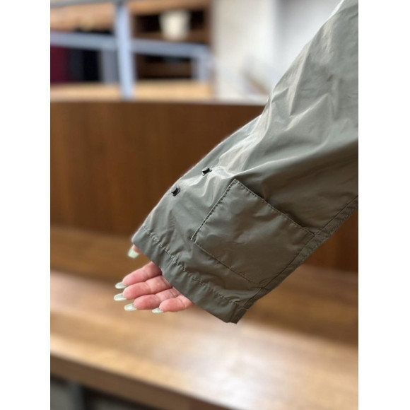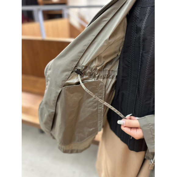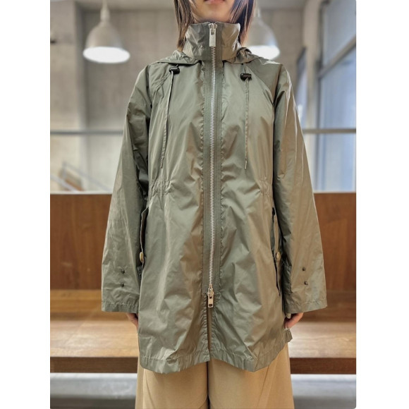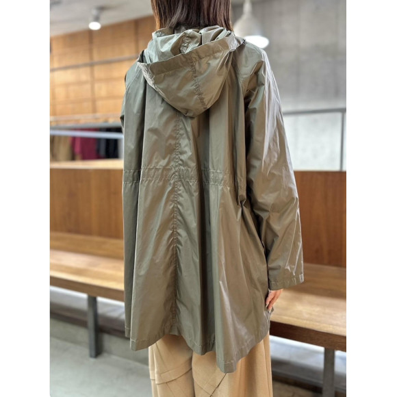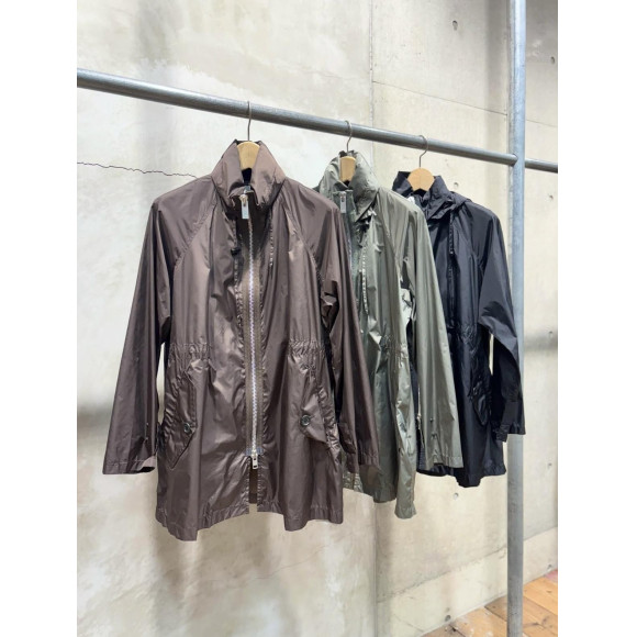 -使用有弹性感的尼龙塔夫塔的短大衣。